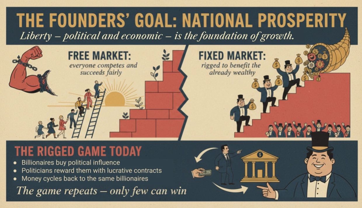 A flood of billionaire and big corporate money is swamping democracy. These “legal bribes” fuel polarization and rig outcomes, making liberty — and especially the pursuit of happiness — impossible to sustain.